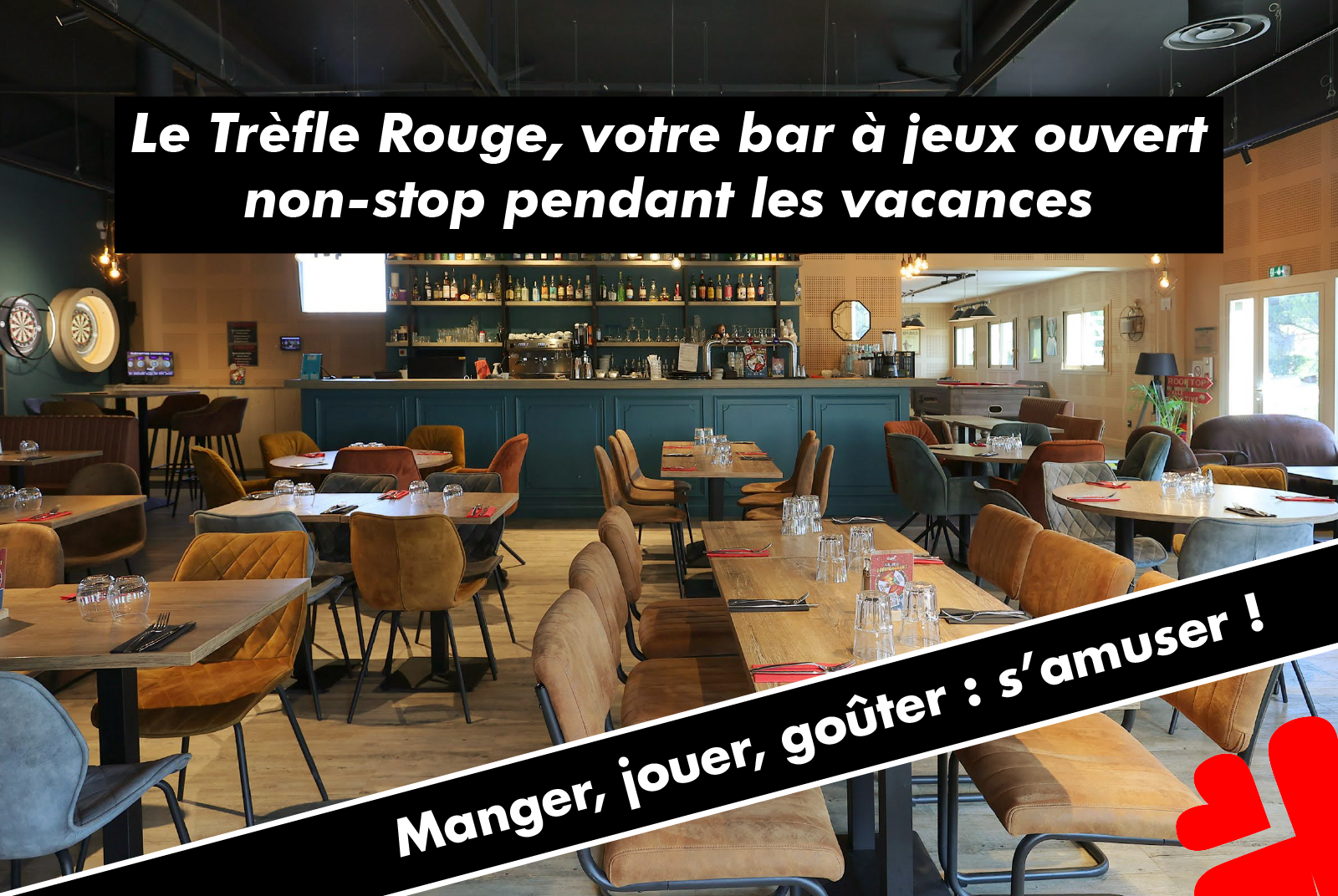 Pendant les vacances, le Trèfle Rouge est ouvert tous les jours :